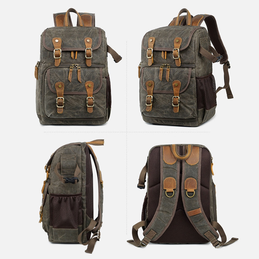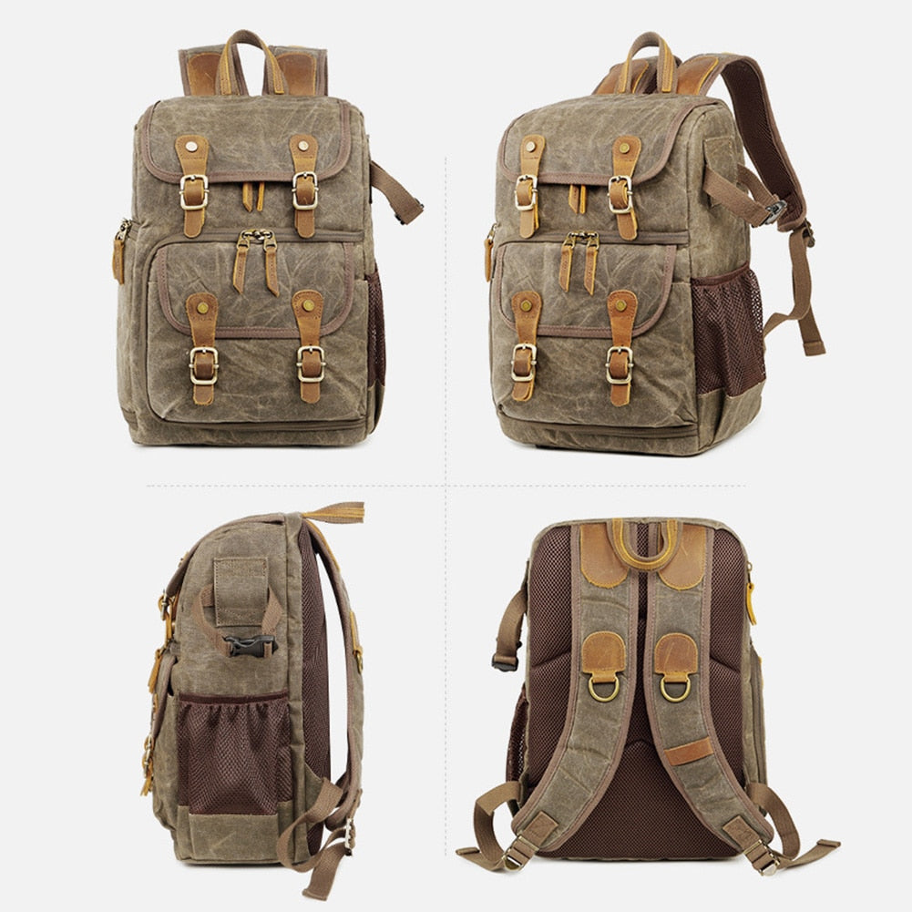 Men's Vintage Explorer Canvas Photographer 'Buckle and Brass' Large Travel Backpack
