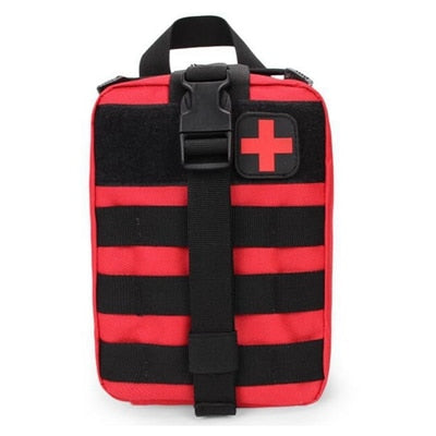 Made of premium and durable military grade 1000D nylon material and sturdy double stitching, durable MOLLE straps with strong snaps allows you to attach this medical pouch to any MOLLE compatible gear( to be worn on belt, vest or pack). Water resistant nylon case and it protect your medical supplies.First aid pouch has Multiple pockets and elastic holders for storage. It is very easy to put goods in and take out. Perfect for carrying medical supplies.The medical pouch has Double zipper, Full zipper clamshell opening and. it will open all the way flat so it won't snap shut when you are trying to access medical supplies.