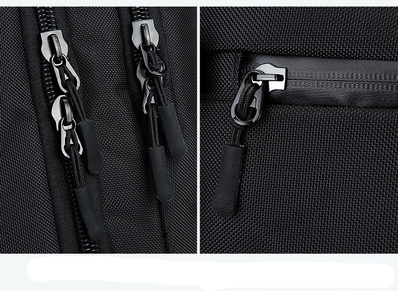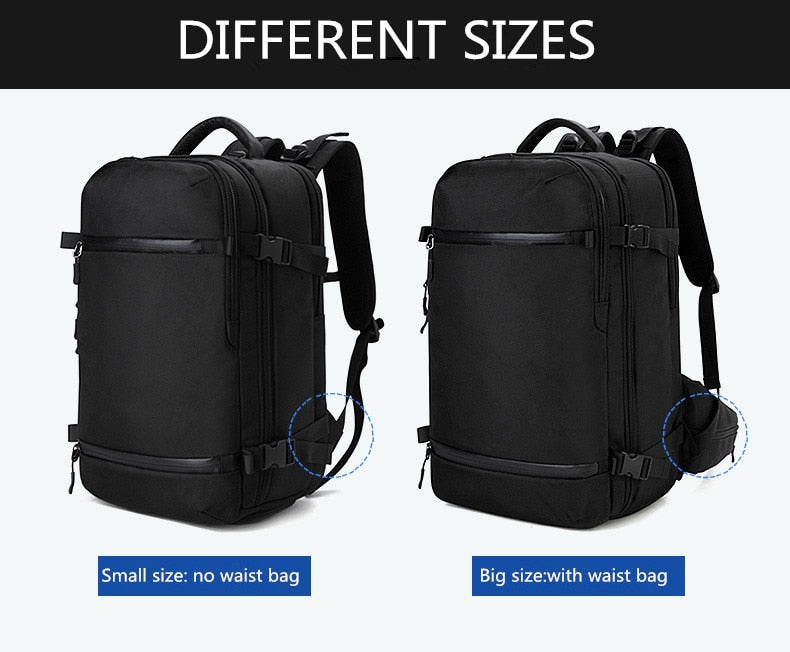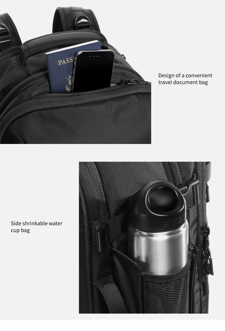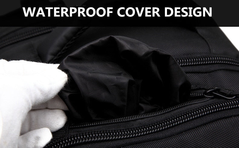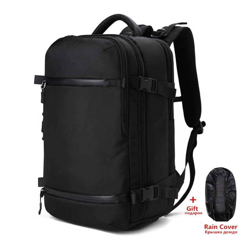 Men's Large Capacity Travel Backpack 17" 20" Laptop w/ Built In Rain Cover Description:
