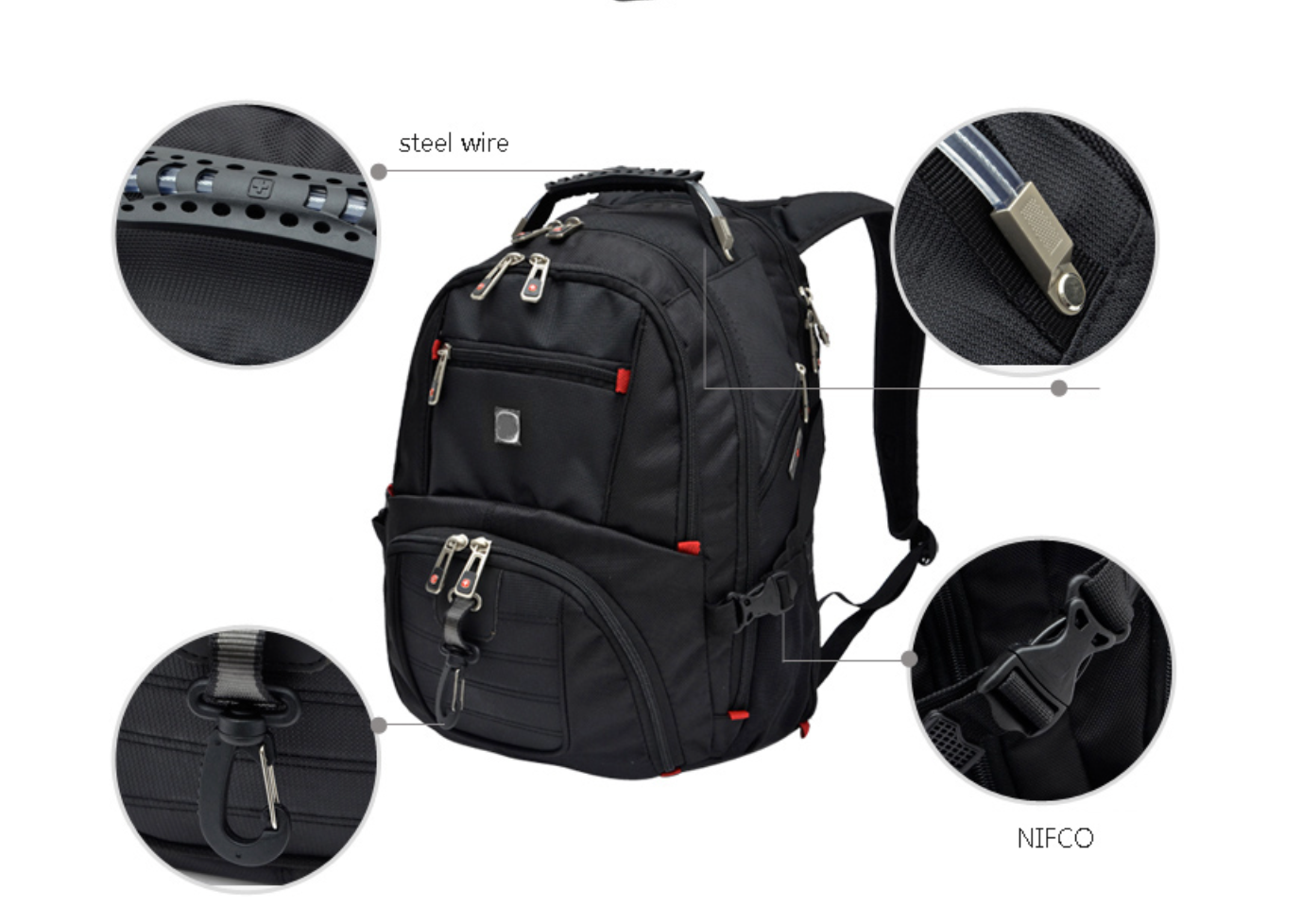 Swiss Design Large Capacity Anti-Theft Travel Backpack with USB Charging Description: