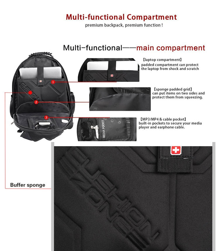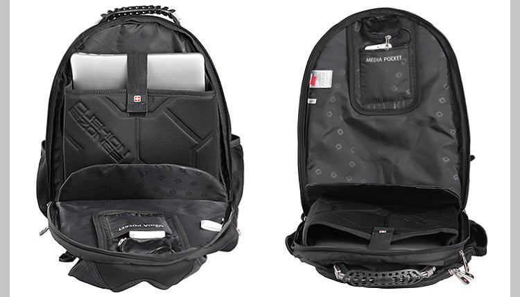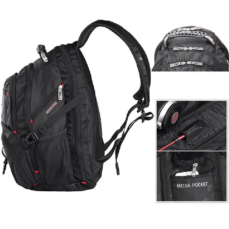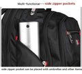 Exclusive to eRucks, this laptop backpack is perfect for the modern traveler on the go. The Swiss Design Large Travel Backpack- EXCLUSIVE is made from durable polyester fabric and features a multi-compartment design with a molded plastic handle, an airflow back panel, and padded shoulder straps that make it comfortable to carry. Detailed with compression straps and water bottle pockets, this backpack includes a padded checkpoint friendly laptop compartment designed to make air travel a little bit easier, a padded tablet pocket, a media pocket to hold valuable devices, and an organizer compartment to hold all sorts of small items and personal accessories.