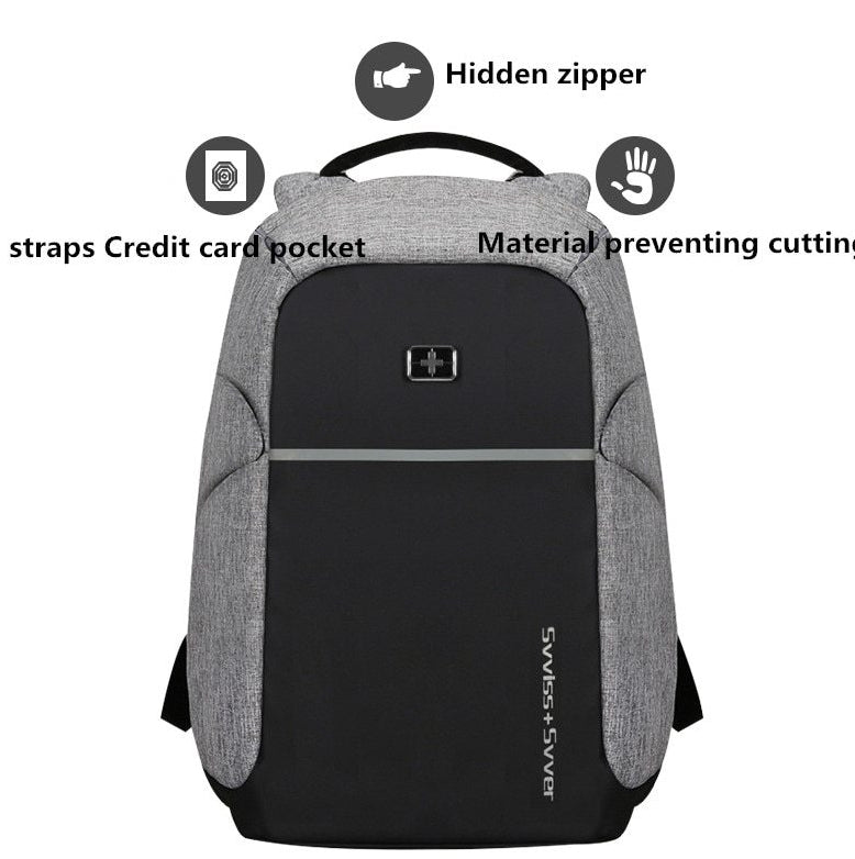 Swiss Style Original Bobby Design Anti-Theft 15" Laptop Backpack with USB Chargingarging Description: