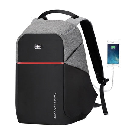 Swiss Style Original Bobby Design Anti-Theft 15" Laptop Backpack with USB Charging