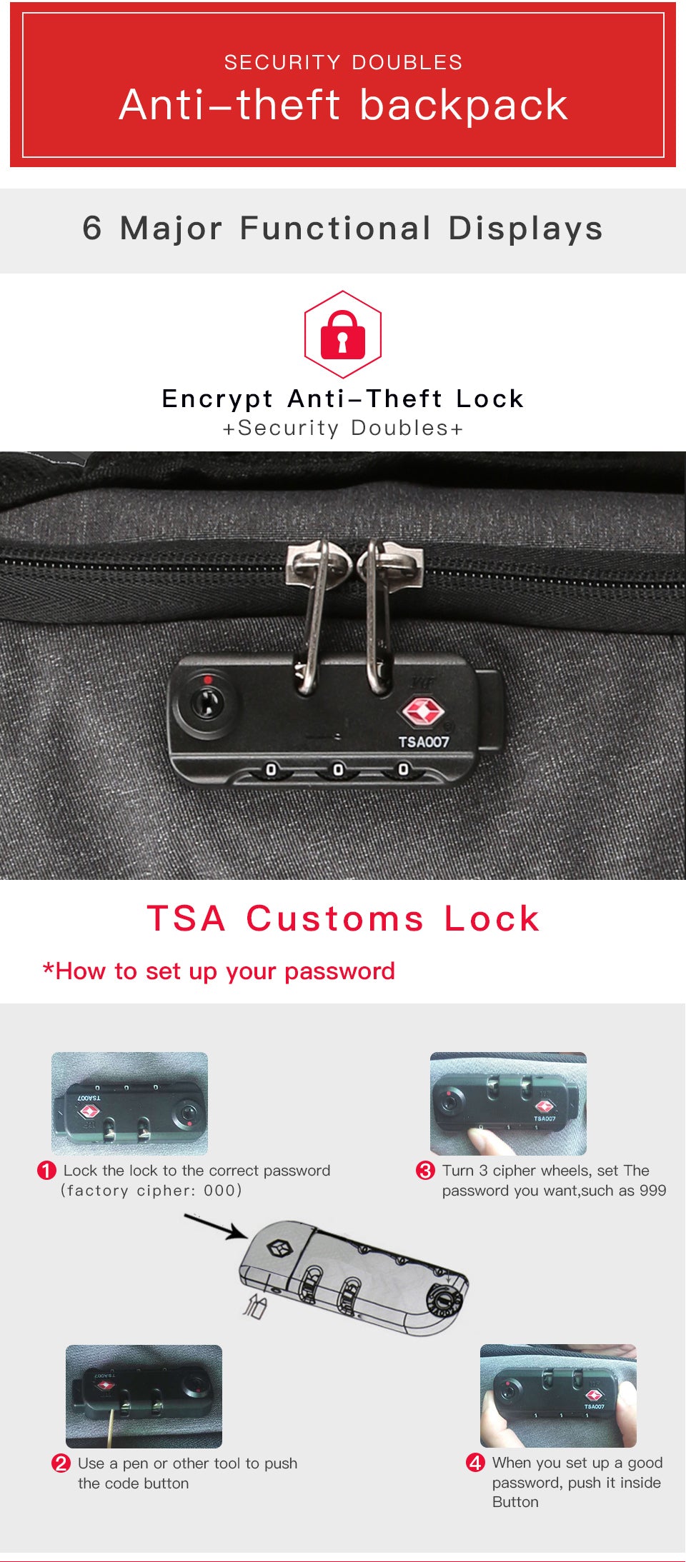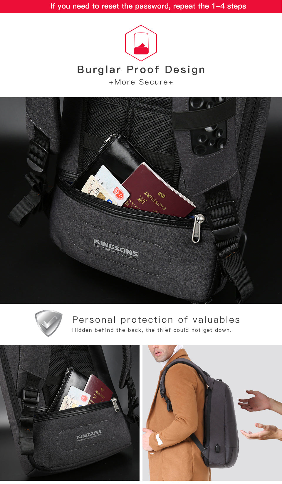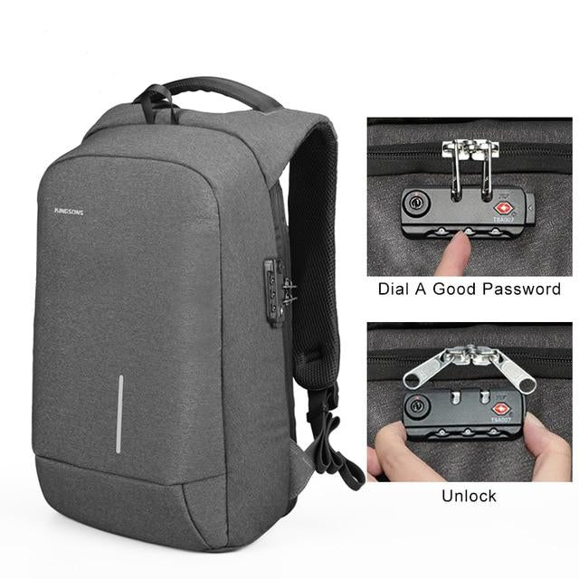 This Medium Anti-Theft 13" 15" Laptop Backpack with USB Charging and TSA Lock is ideal for business, school or quick day trips. The dual shoulder straps provide comfort when you're on the go. Side pockets and hidden zippers are the ideal safety features to keep phones, keys and wallets safe. This Medium Anti-Theft 13" 15" Laptop Backpack with USB Charging and TSA Lock is supremely sturdy and made with quality craftsmanship, this backpack is everything you need to get you through your day. Additional features include convenient USB port for easy and quick charging and password protected lock.