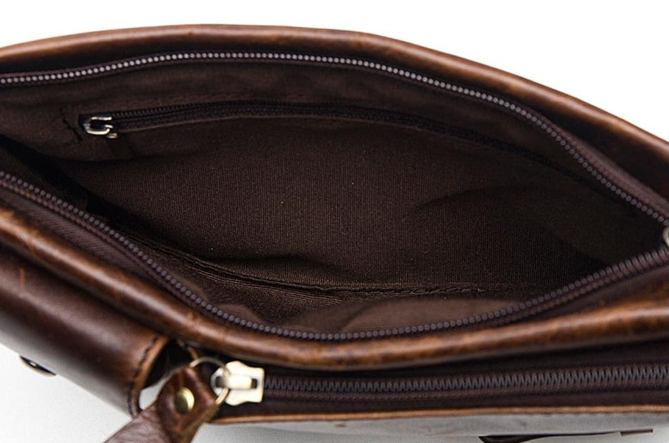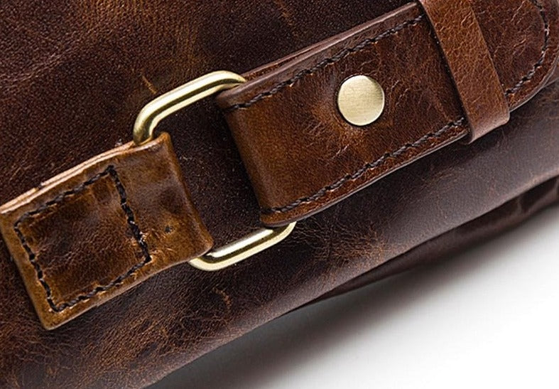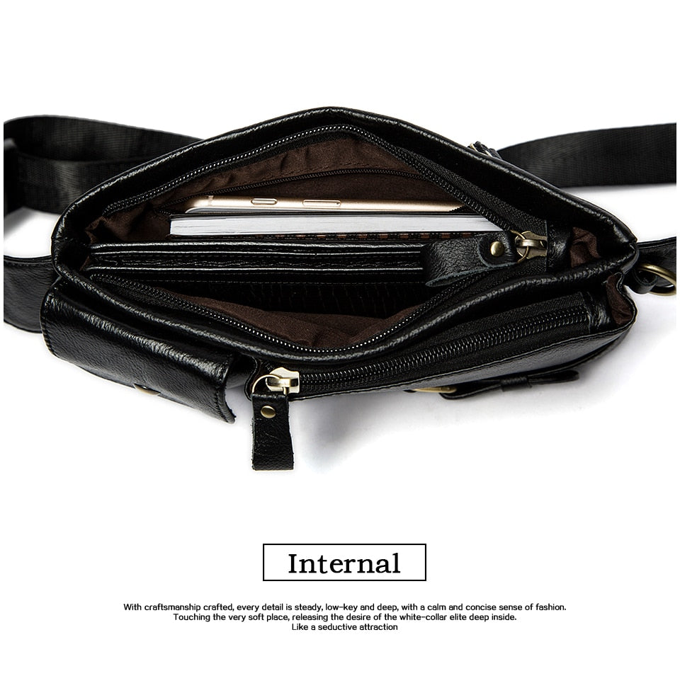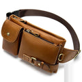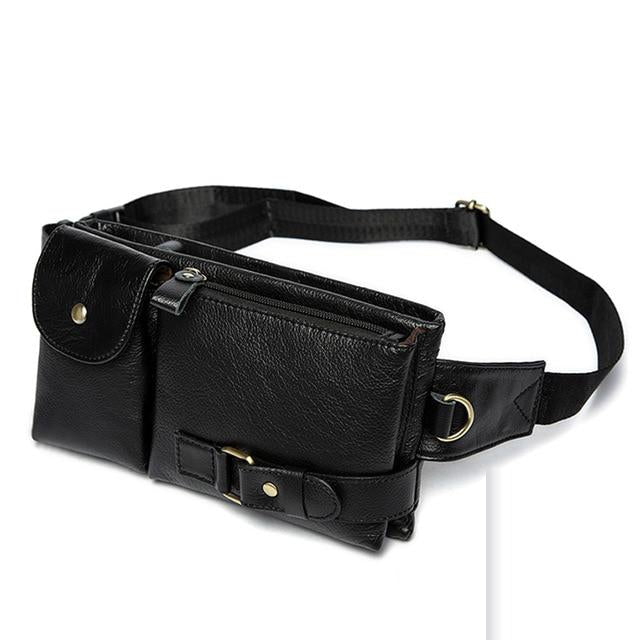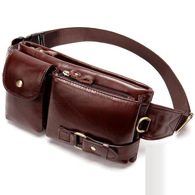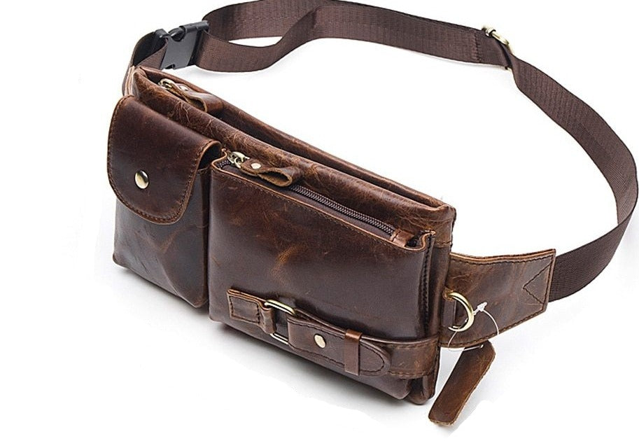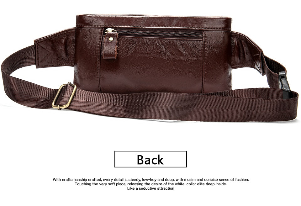 Keep your must haves within easy reach when you're on the go with this sleek leather waist pack.. Our Leather Waist Pack Hip Purse is crafted from genuine distressed leather and features a small shape with a multi-compartment design that offers quick access to your most important items. This waist pack features a zippered back pocket to hold cash and valuables and two flap front pockets to hold your smartphone, keys, and other small items. An adjustable waist strap makes it comfortable to carry for a day of shopping, running errands, or trekking across town.