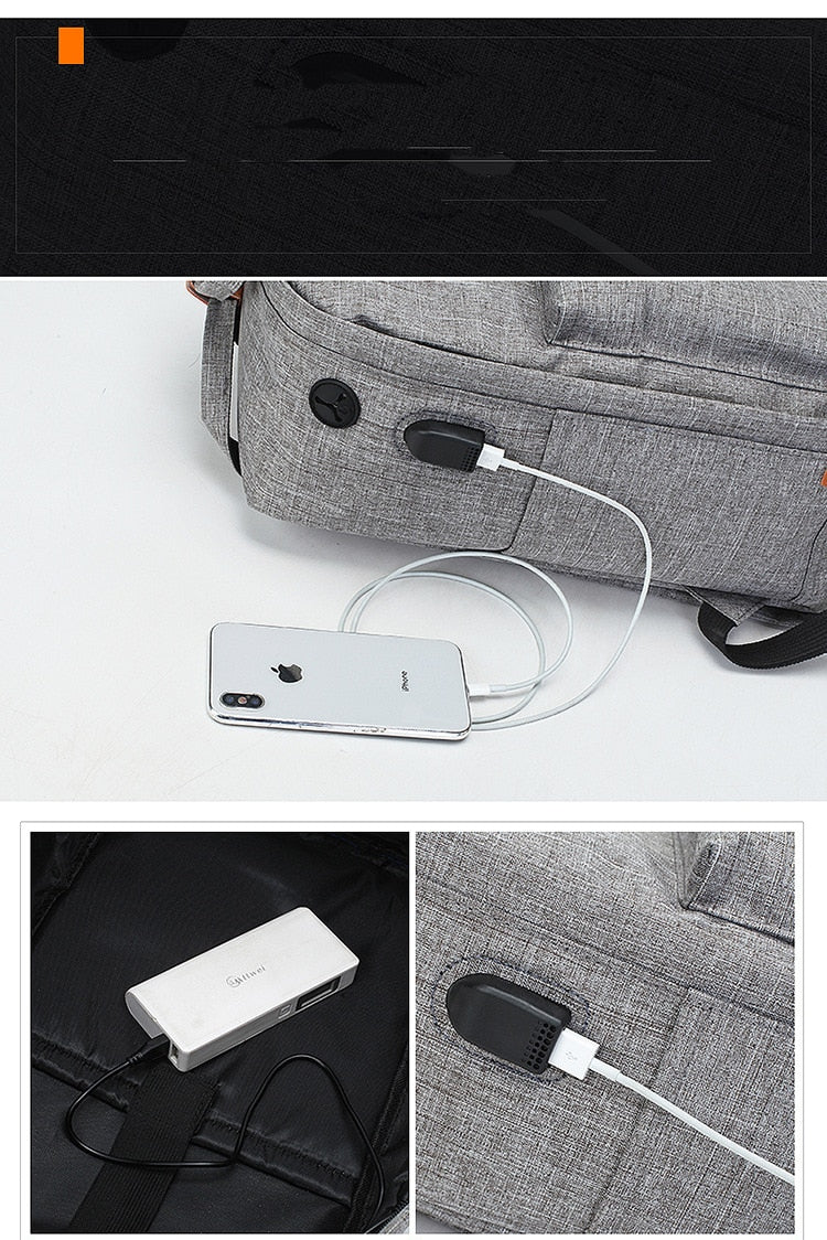 Fits laptops up to 14" in laptop the padded main compartment. USB Charging port for easy charging on the go.