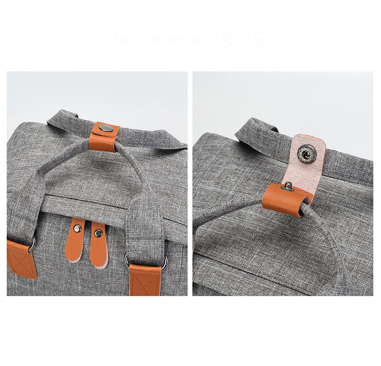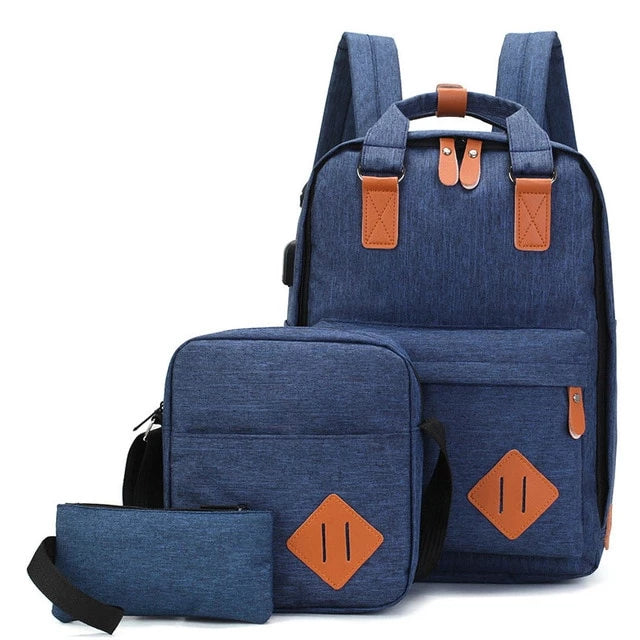 Women's Heather Vintage School Backpack with USB Charging, Crossbody Bag and Pouch Set Description:
