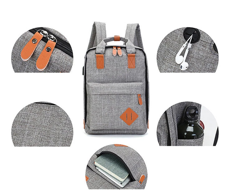 A classic, our Women's Heather Vintage School Backpack with USB Charging, Crossbody Bag and Pouch Set is loved and worn by women all over the world over. It stays sleek and slim, no matter what goes in. Weather resistant, whatever’s thrown at it. Beautifully finished, and organized to a T. Your perfect companion, day or night.