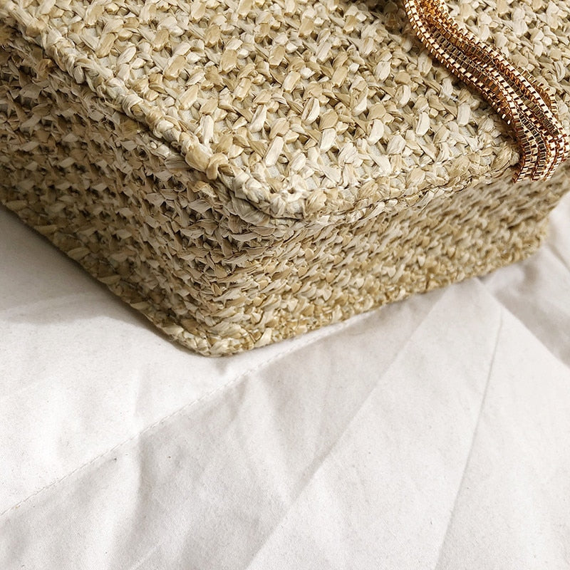 Women's Hexagon Straw and Vegan Leather Crossbody Bag Special Features: